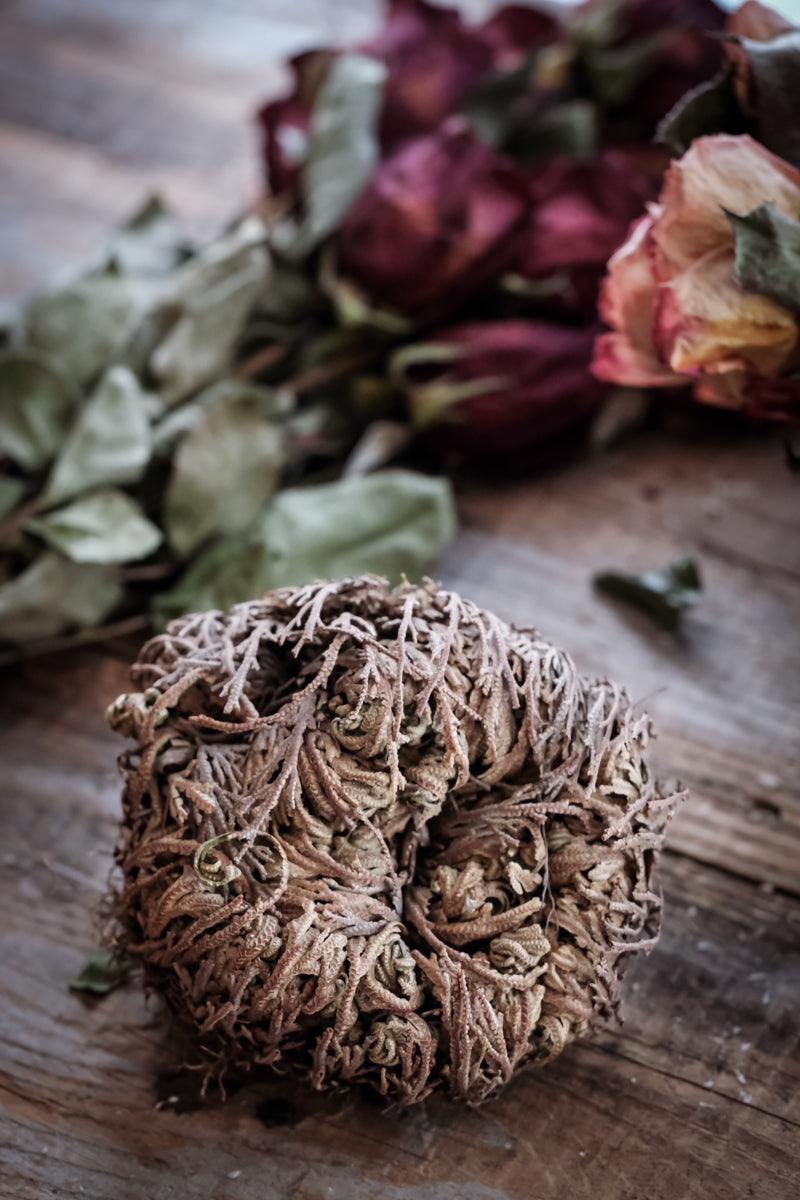 Awaken this plant by placing it inside a shallow bowl of lukewarm rainwater, river water, or moon water. When you wish to put the rose of Jericho to rest, remove it from the water and allow it to dry completely before wrapping it in a soft cloth.