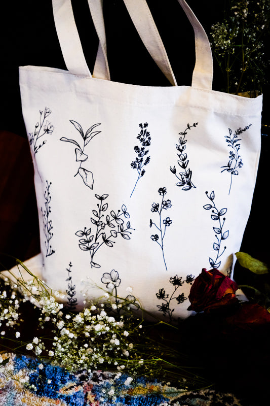 Our Botanical Canvas Bag is perfect for grocery trips, wild crafting and carrying around all your favorite herbal books. Measures 12x16 and is machine washable.