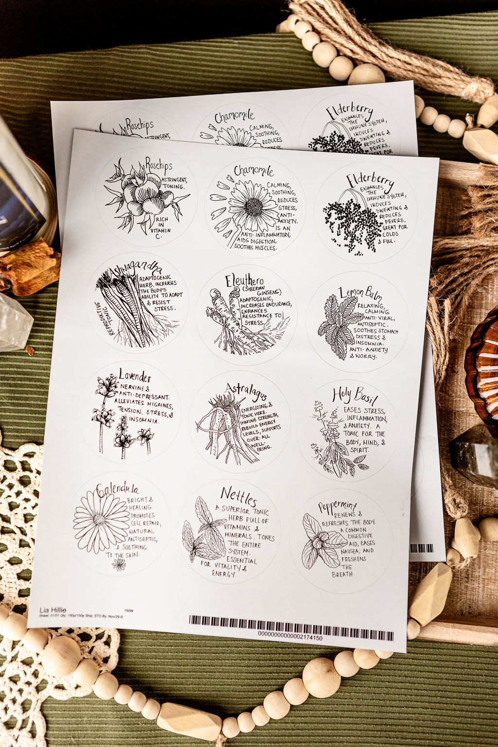 Each sheet includes 12 hand drawn apothecary labels for your herb jars. Created by Lia Hillie of Wild Indigo Herbs. 🌱
