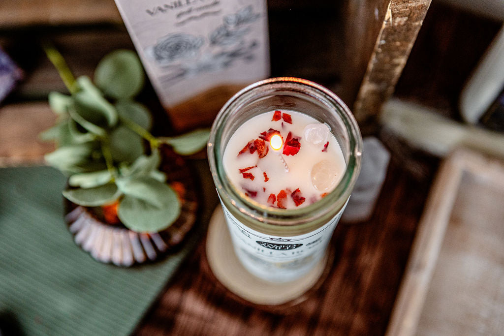 Unwind with our Vanilla Rose Candle—sweet vanilla meets subtle rose for a calming blend. The flickering flame sets a cozy vibe, making any space a retreat. Indulge in the soothing aroma, a perfect balance of warmth and floral simplicity. Use this spell candle for any type of cozy magick that calls to you.