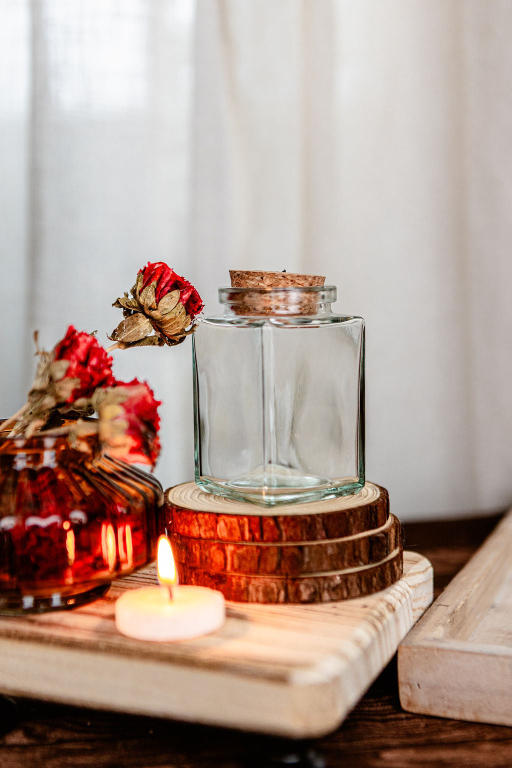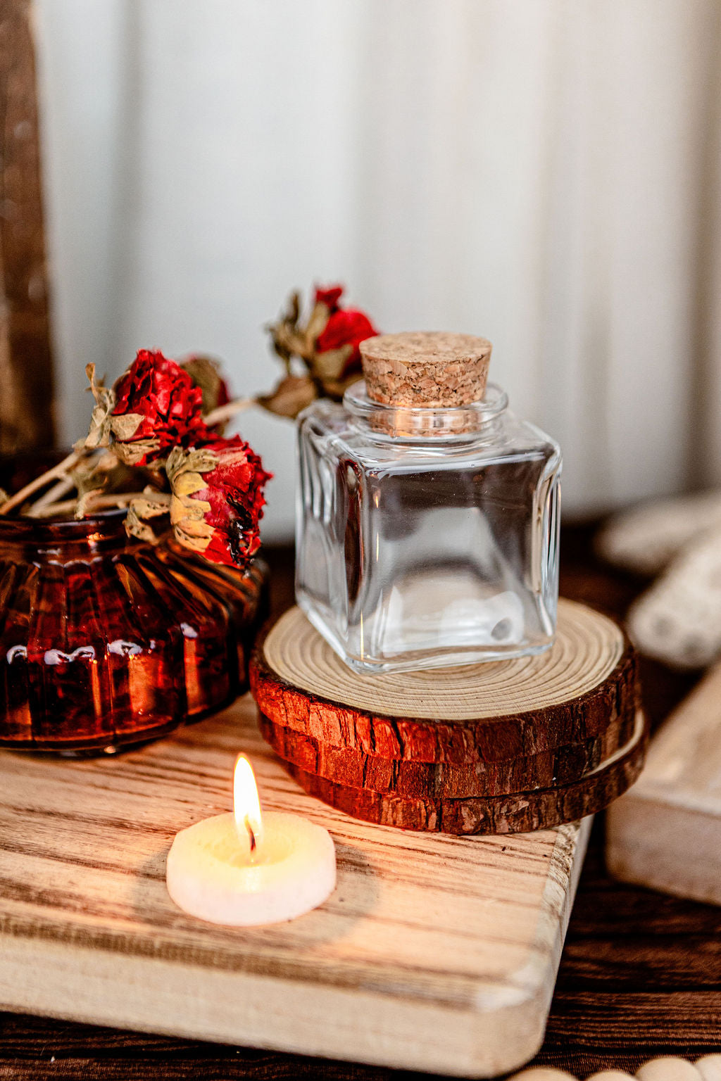 Add to your collection of cork top glass jars. Perfect for twigs, stones, small ritual items, etc.