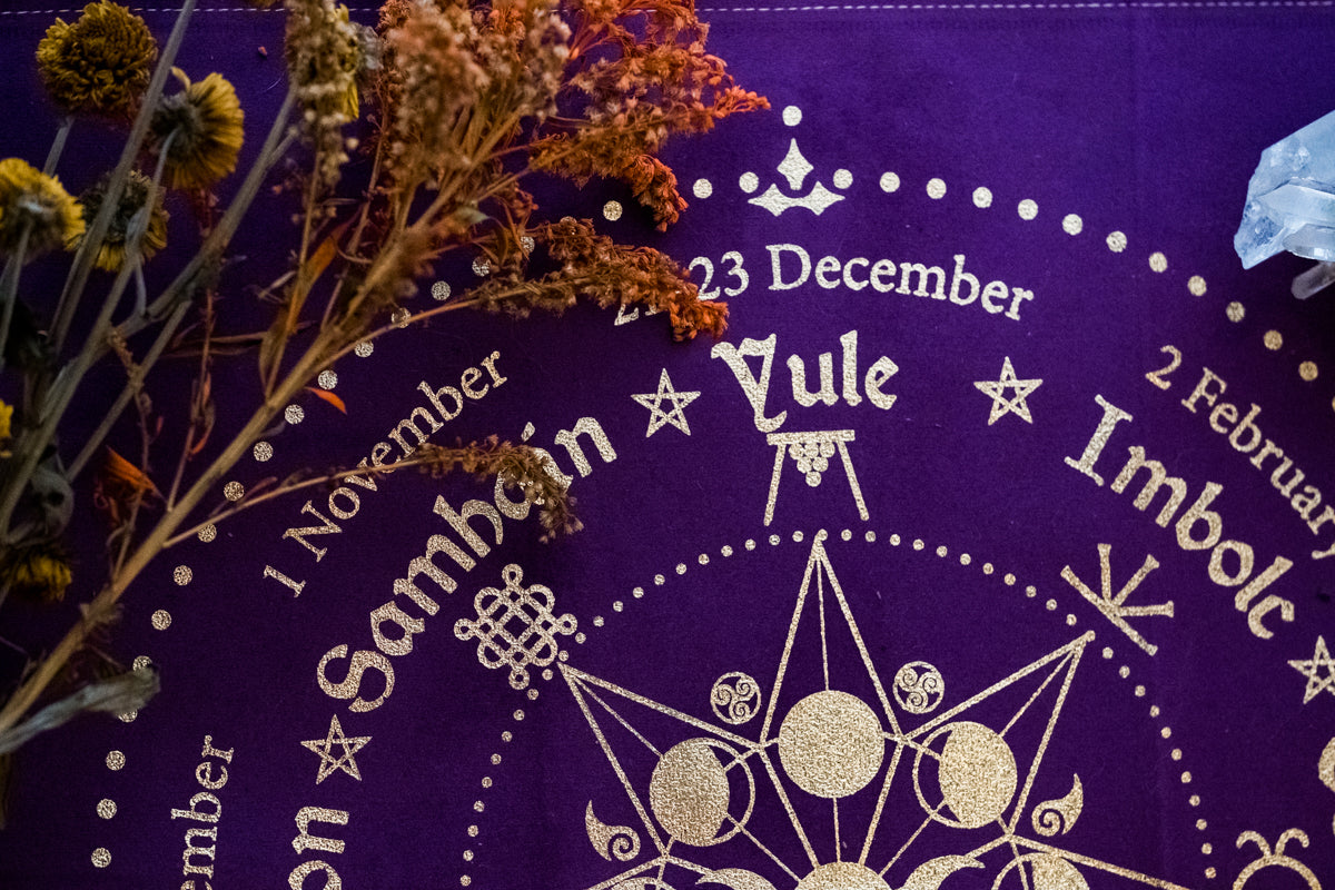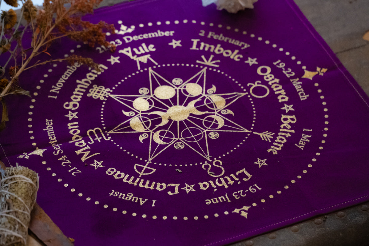 Wheel of the Year Altar Cloth//Royal Purple and Gold