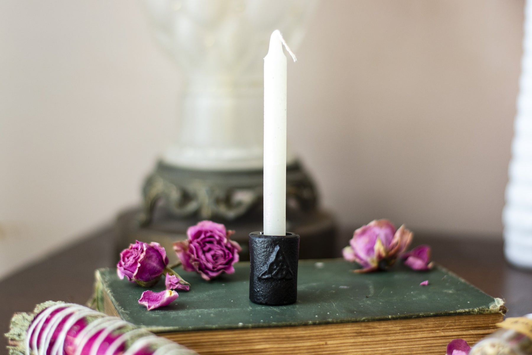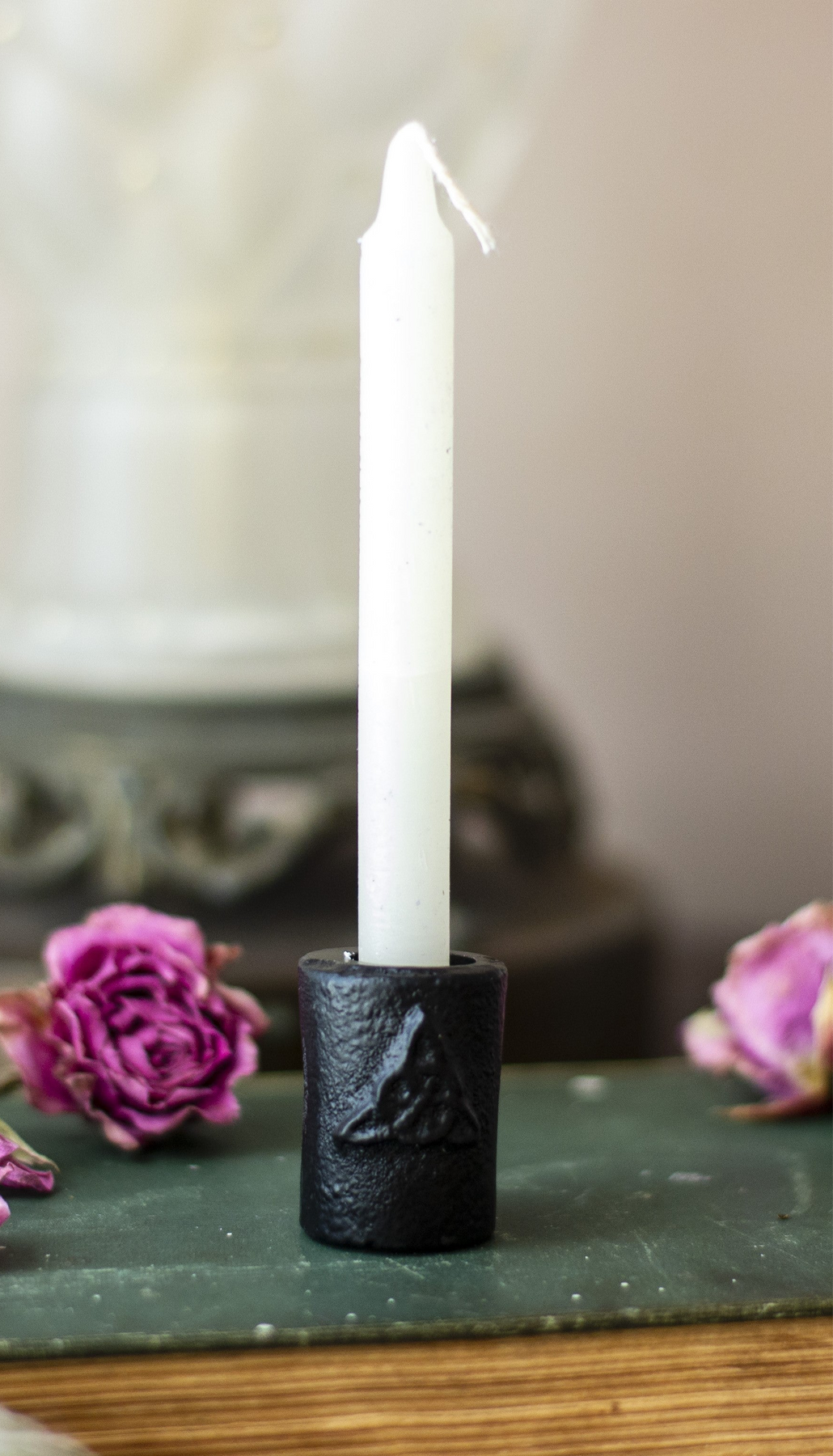 This small but sturdy chime candle holder is perfect for altar or ritual work. This holder will keep any 4inch chime style candle snug while it burns down.