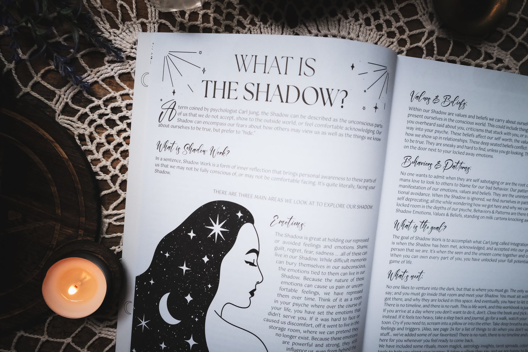 In a sentence, Shadow Work is a form of inner reflection that brings personal awareness to these parts of us that we may not be fully conscious of, or may not be comfortable facing. It's quite literally, facing your Shadow.