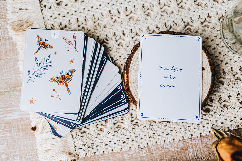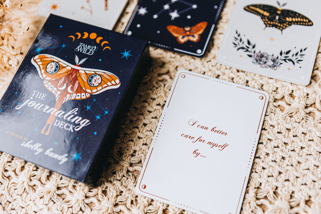 The Journaling Deck by Tamed Wild was created as a tool for self exploration and self appreciation. With thought provoking questions and prompts, we hope to entice you to explore, play and find meaning in who you are in this world.