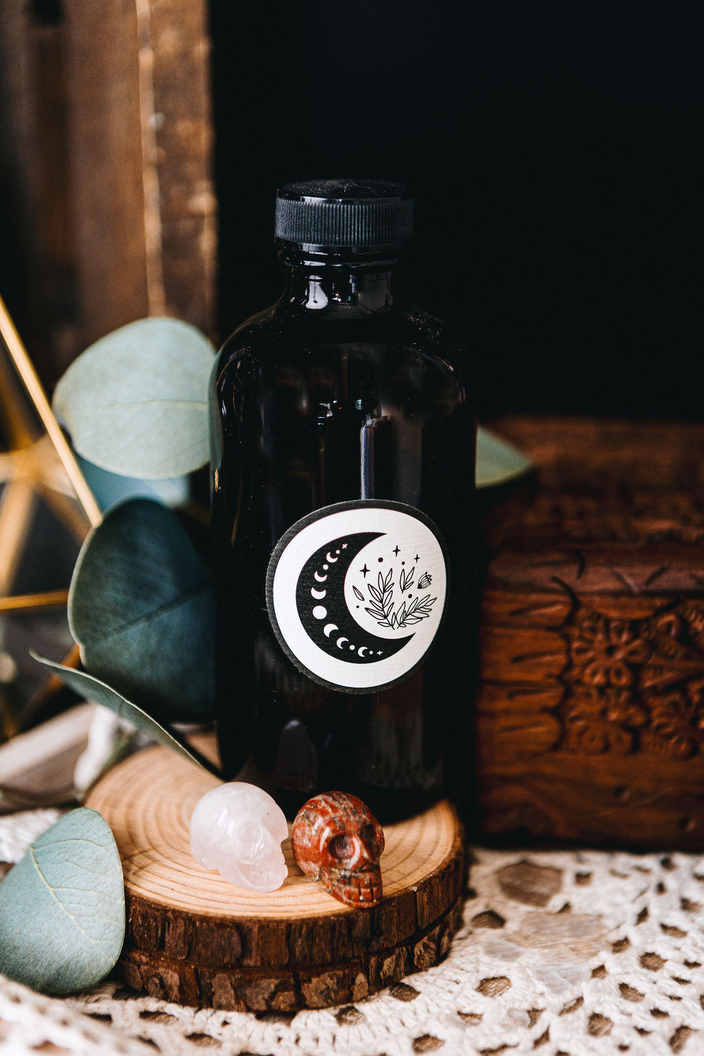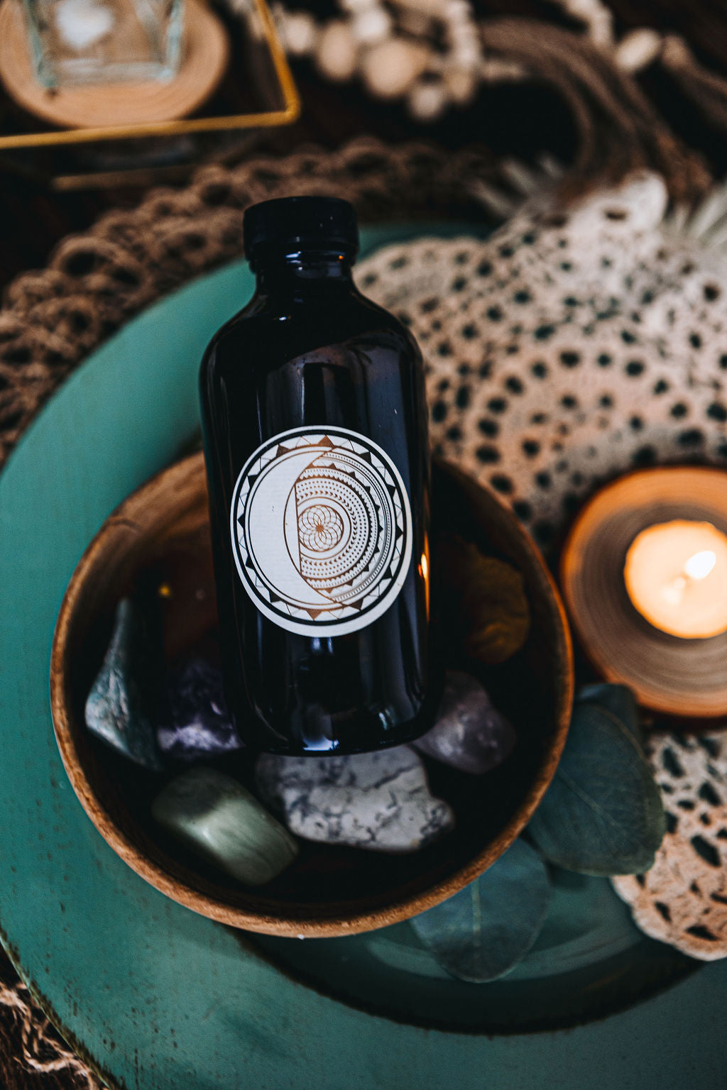 This 8 oz amber bottle is designed to store your intention charged moon water.