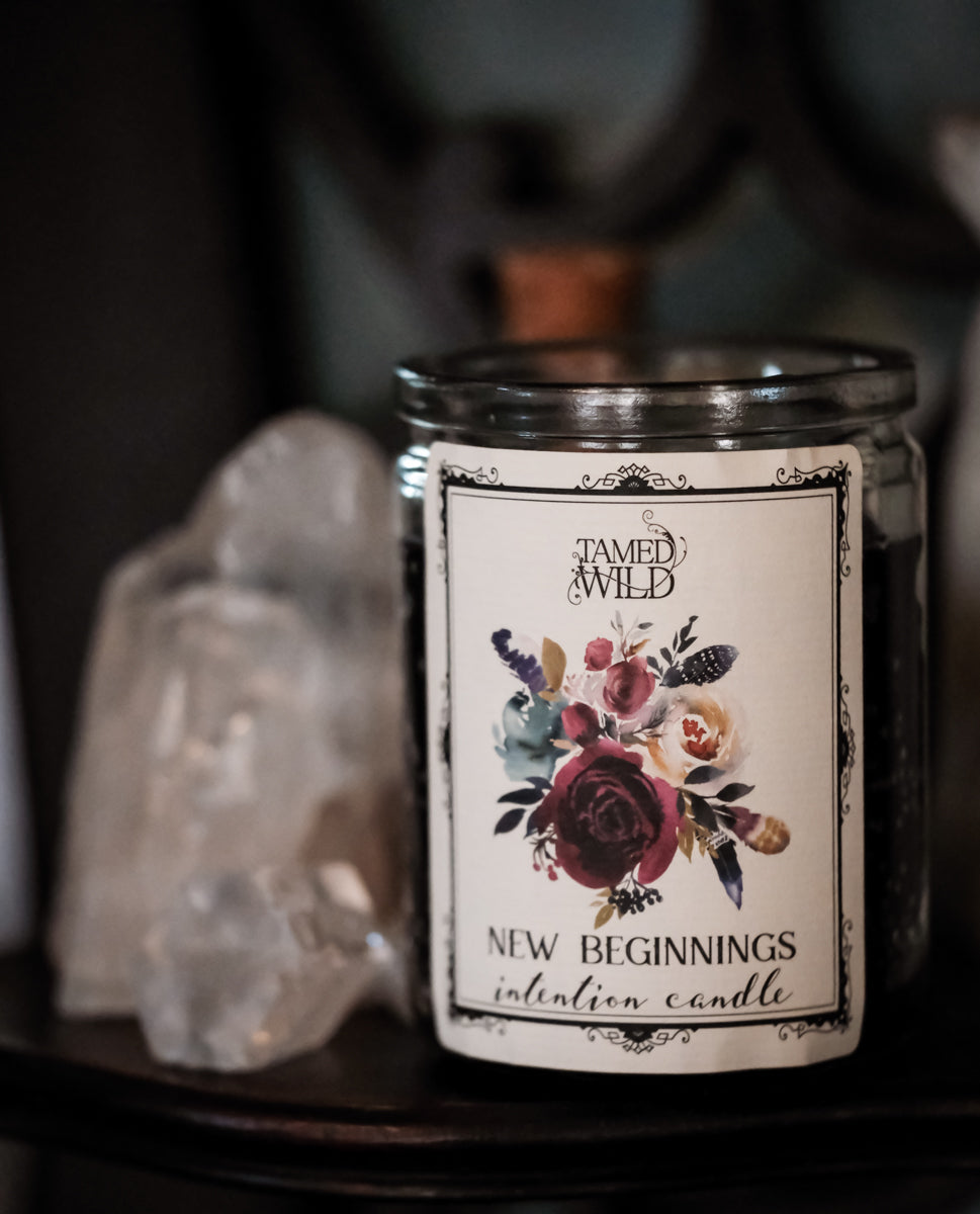 Our intention candles come to you infused with bay leaf and selenite crystals.