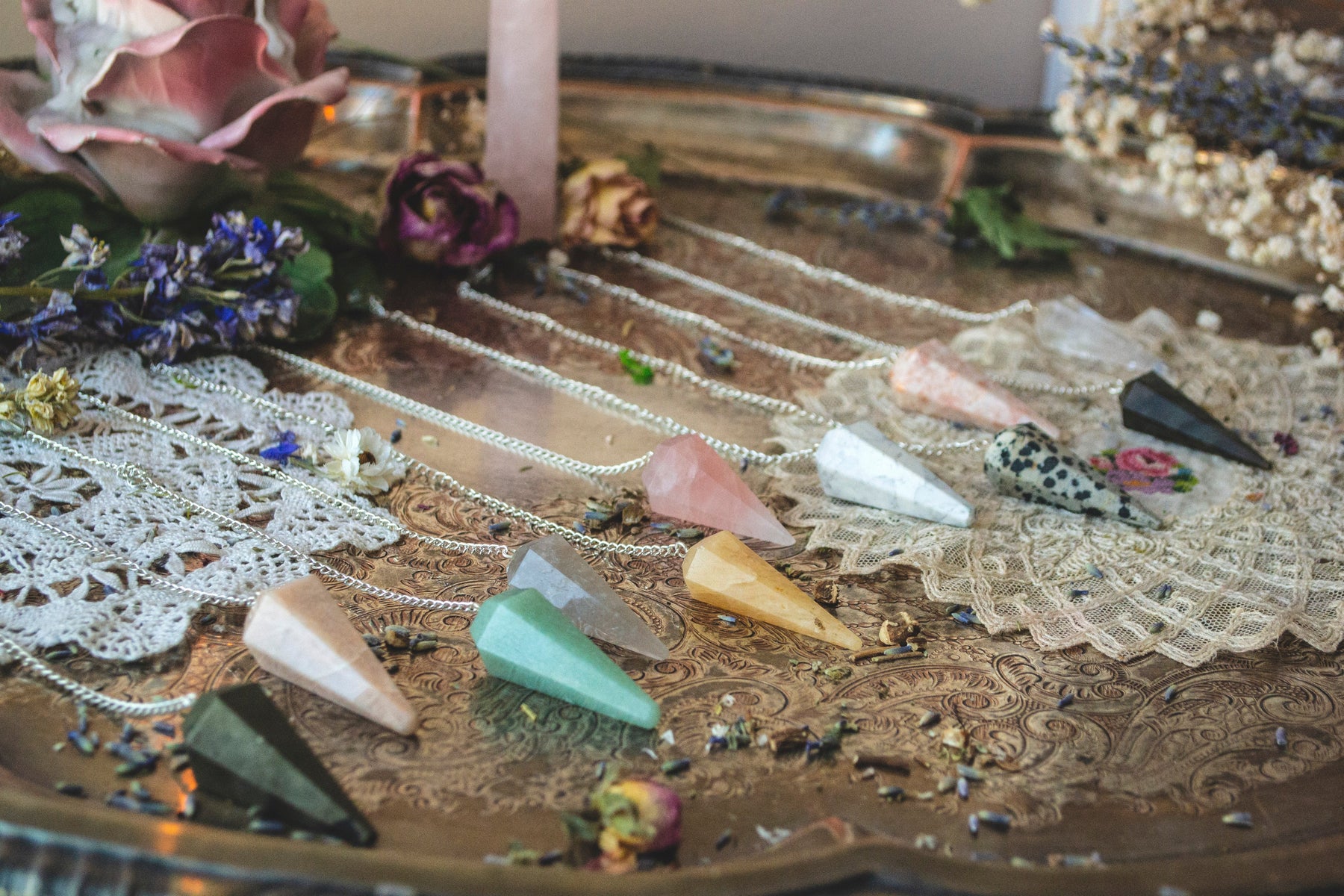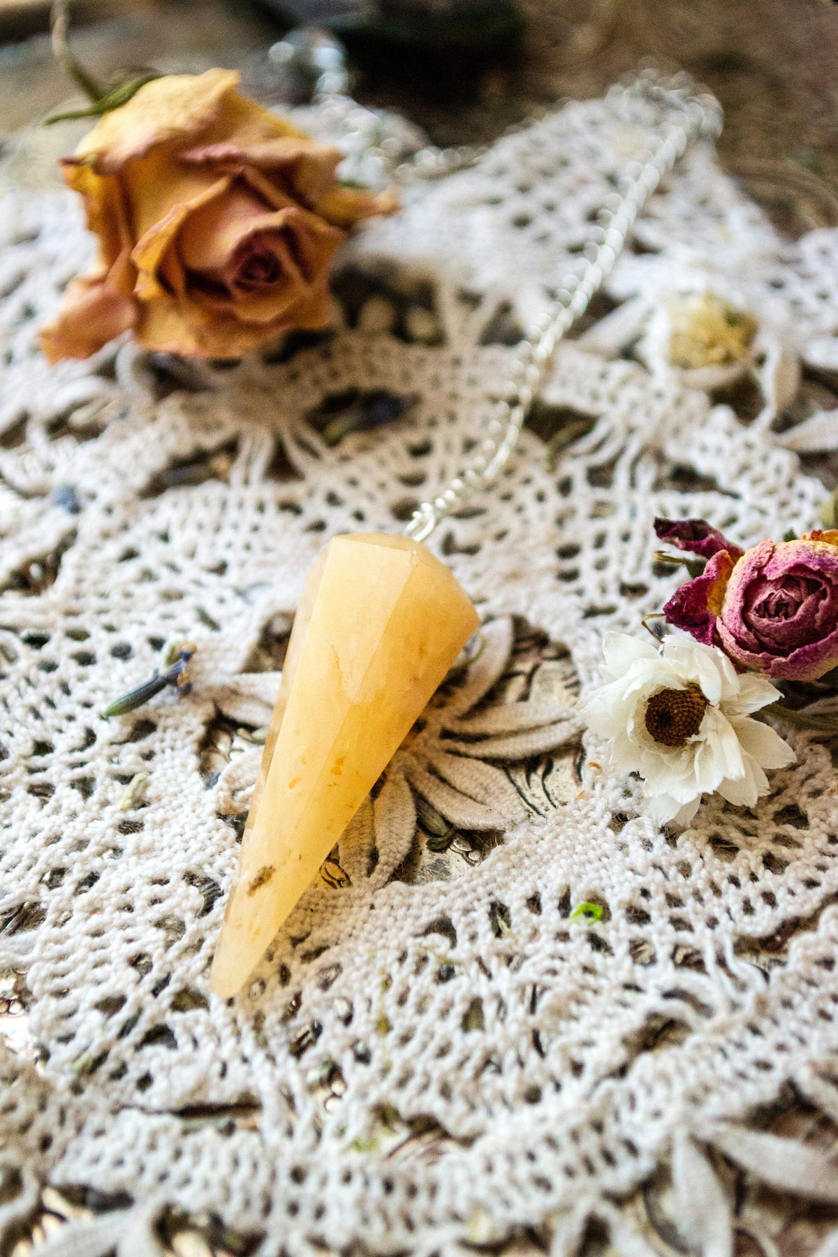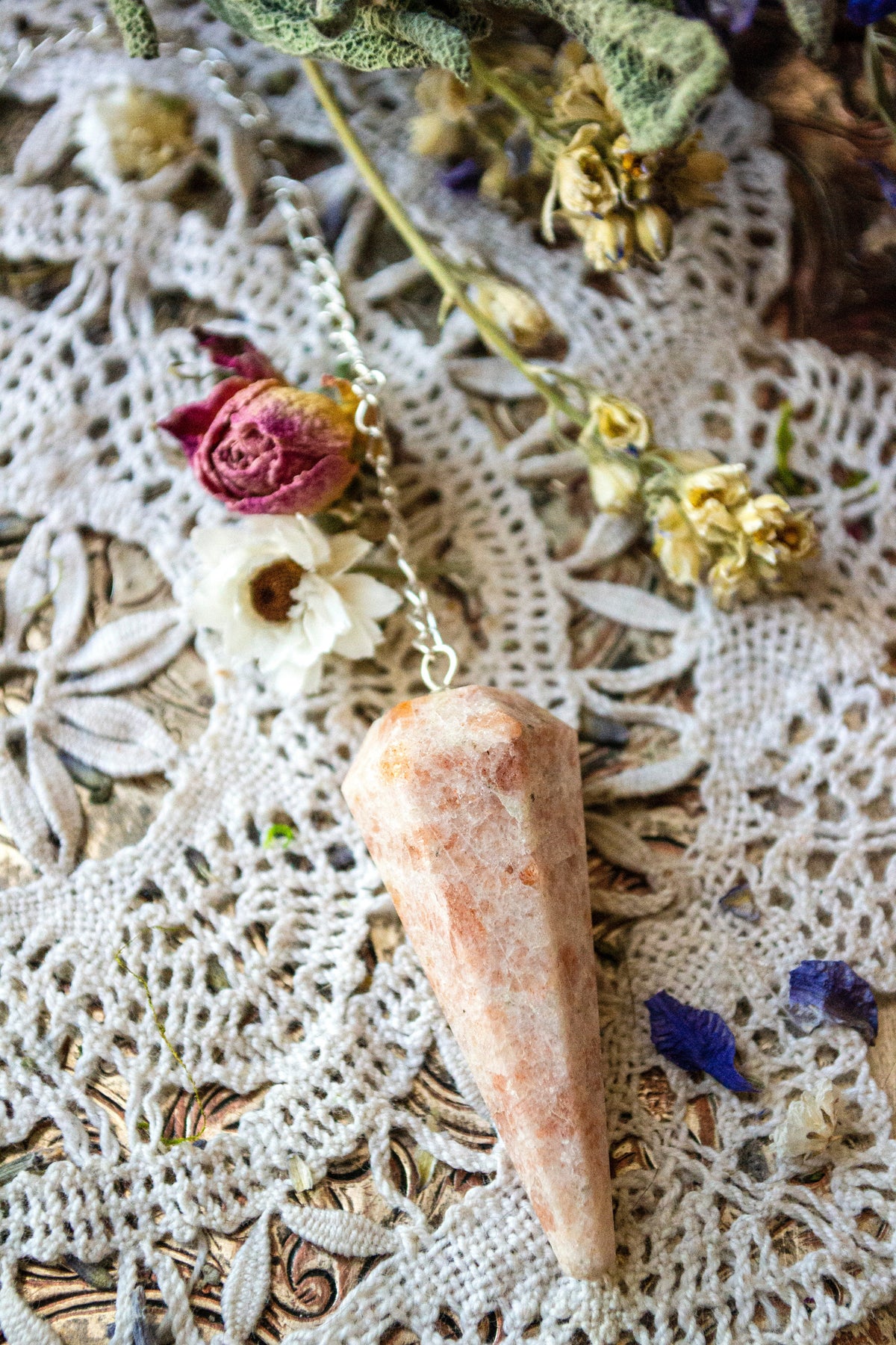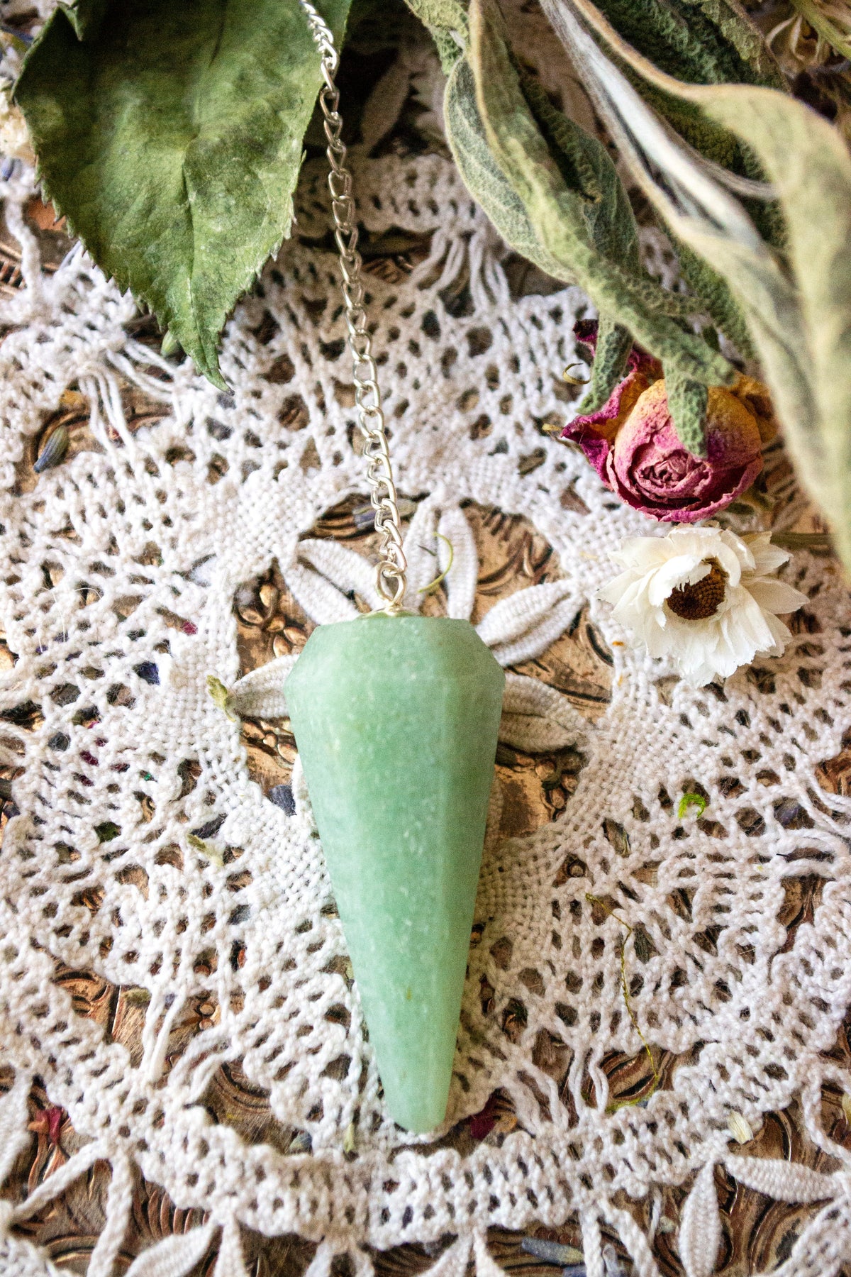 Pendulums are a popular tool used during divination to assist one in finding answers to questions, locating objects, diagnosing medical afflictions and other holistic modalities. Pendulums don't usually take much time to get started, and are perfect for beginners and those familiar with divination. Each pendulum contains the healing properties of the stone. Pendulums are also said to have the ability to cleanse and balance your personal energy.